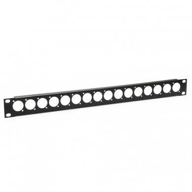 1U Panel with 16 x XLR or SpeakON punched holes, none populated but ready to receive 16 x XLR or SpeakON Couplers.