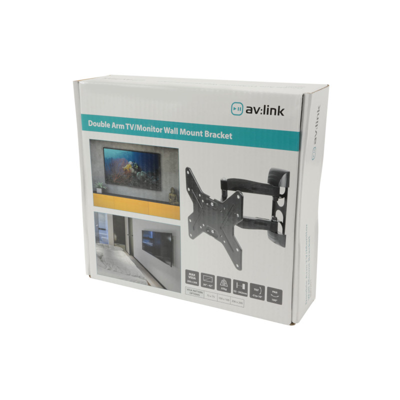 av:link - av:link - 200 x 200mm, Twin Braced 3 Point Swival Arm, TV Wall Bracket