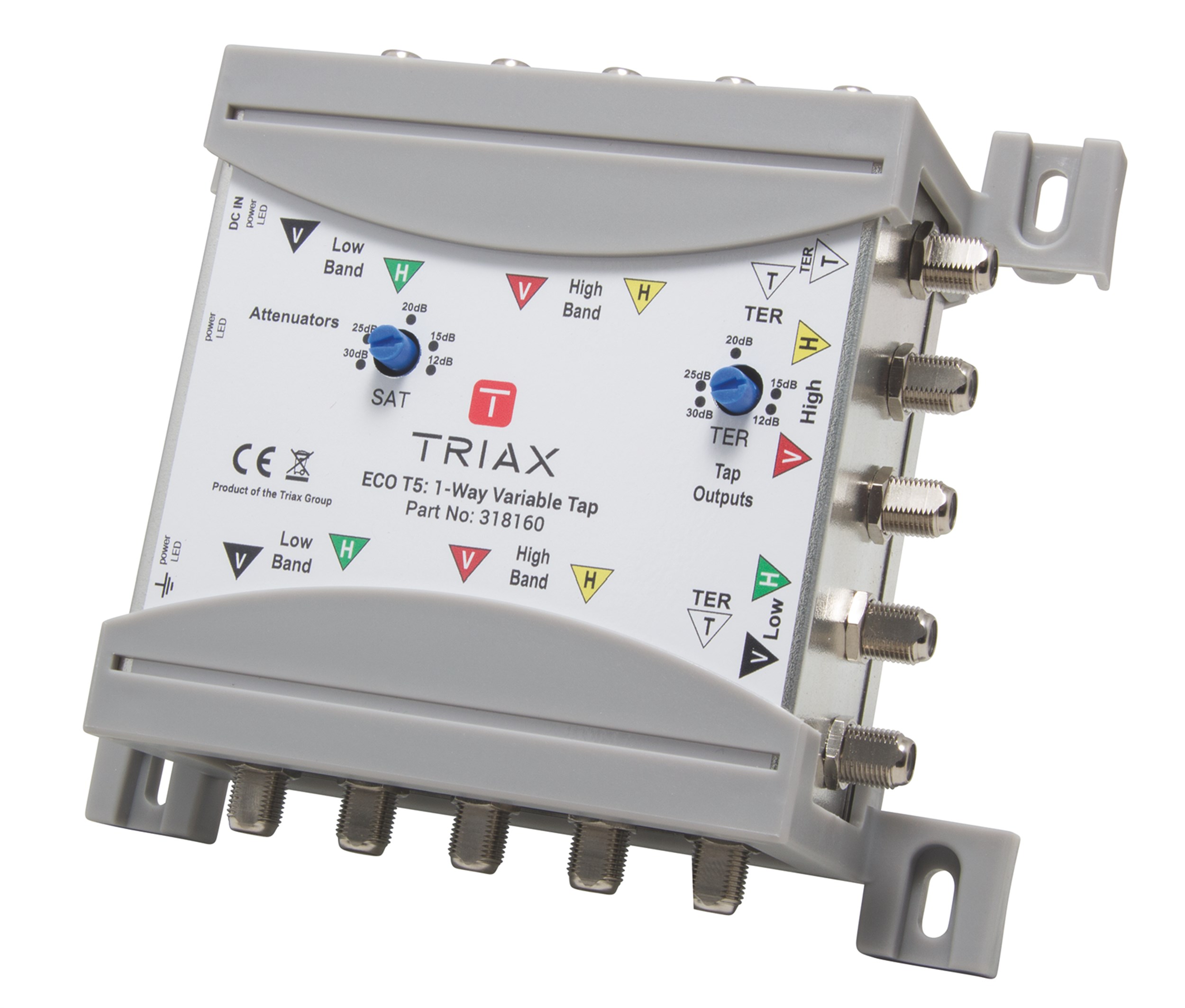 Simplifiy your IRS Installations with the new adjustable tapThe T5 Adjustable Tap for Satellite 30 to 12dB attenuation and terrestrial 30 to 12dB attenuation via a selector pots designed with the latest chipset technology for excellent linearity across all polarities.